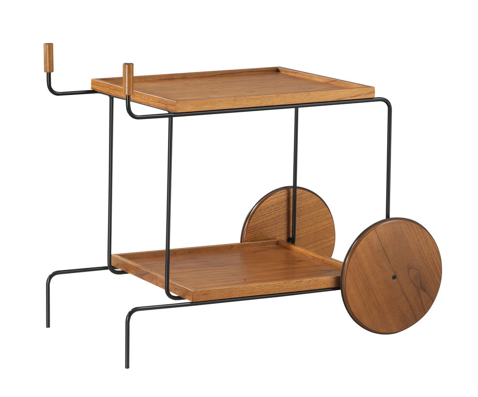The Minimal bar cart features a timeless design, celebrating clean, coherent lines that embody minimalism and contemporary style while beautifully combining refined materials. Metal frame. Trays and wheels made of natural wood veneer (cinnamon wood).